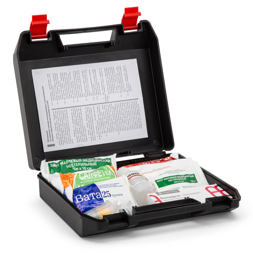 Аптечка первой помощи универсальная «МИРАЛ», пластиковый футляр, габариты 235х70х205 мм., ТУ 9398-011-26528997-2010.
