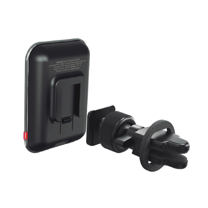 Магнитный автомобильный держатель "KODAK", крепление на дефлектор воздуховода, с функцией беспроводной зарядки. Мощность: 5Вт. напряжение: 4,75-5,5В. сила тока: 1,5-2А.