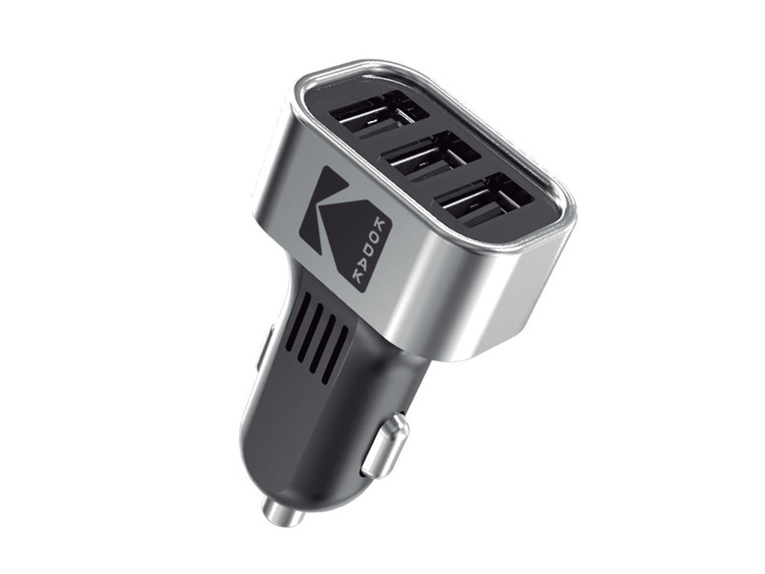 Автомобильное зарядное устройство "KODAK", 3 USB-порта, постоянное напряжение на входе: 12 В. напряжение и сила тока на выходе: 5 В/2,4 A, итого 7,2 А. 3 USB порта по 2,4 А.
