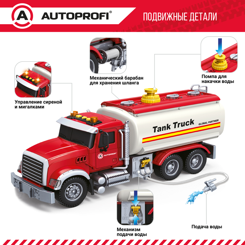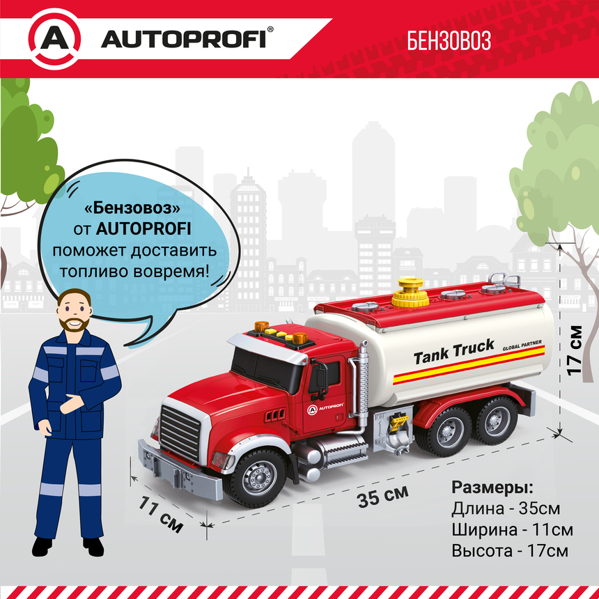 Инерционный городской транспорт с подвижными деталями "Бензовоз", свет, звук, 35 см