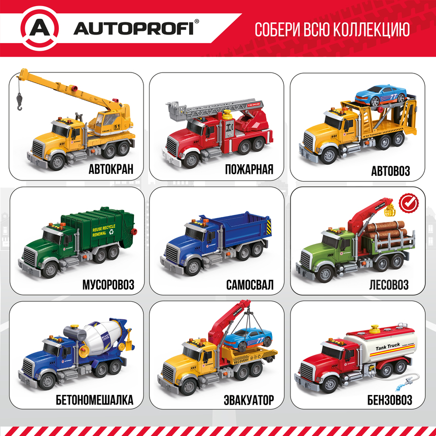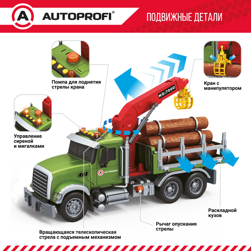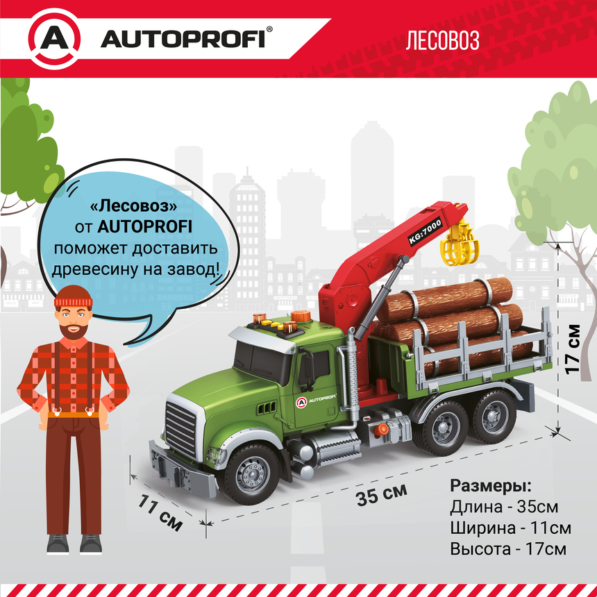 Инерционный городской транспорт с подвижными деталями "Лесовоз", свет, звук, 35 см