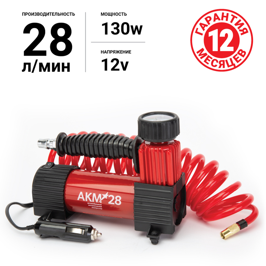 Линейка компрессоров AUTOPROFI серия АКМ - это новый дизайн, хорошая производительность, и комплектация, включающая в себя все необходимое. Металлический корпус и цельнометаллический поршневой насос на всех компрессорах линейки АКМ. Компрессор АКМ-28 оборудован точным двушкальным манометром, быстросъемным шлангом, кабелем питания 3 метровой длины и удобной сумкой для хранения и переноски. Компрессор позволяет полностью удовлетворить ожидания потребителей, которые ищут «ЗОЛОТУЮ СЕРЕДИНУ», при этом оставаясь полноценными компрессорами для накачивания шин автомобилей, велосипедов и других надувных изделий.