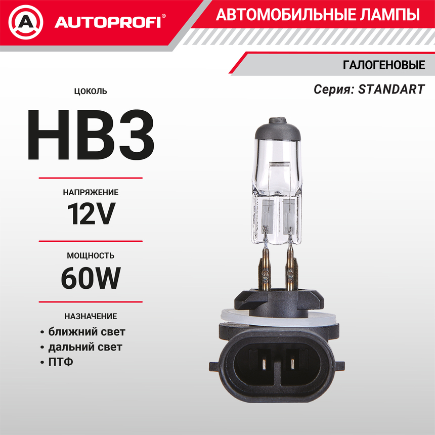 Линейка галогеновых ламп AUTOPROFI STANDART – это доступный и одновременно необходимый компонент для исправной работы головного света современного автомобиля. Ключевое преимущество ламп линейки AUTOPROFI STANDART – наилучшее соотношение стоимости, ресурса и эффективности.