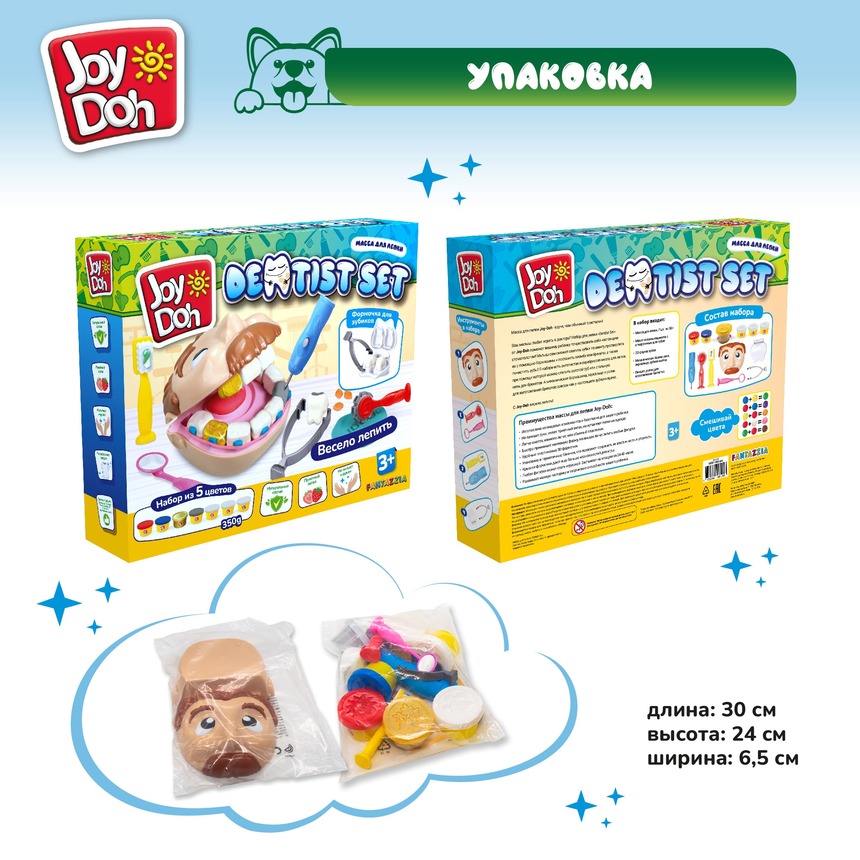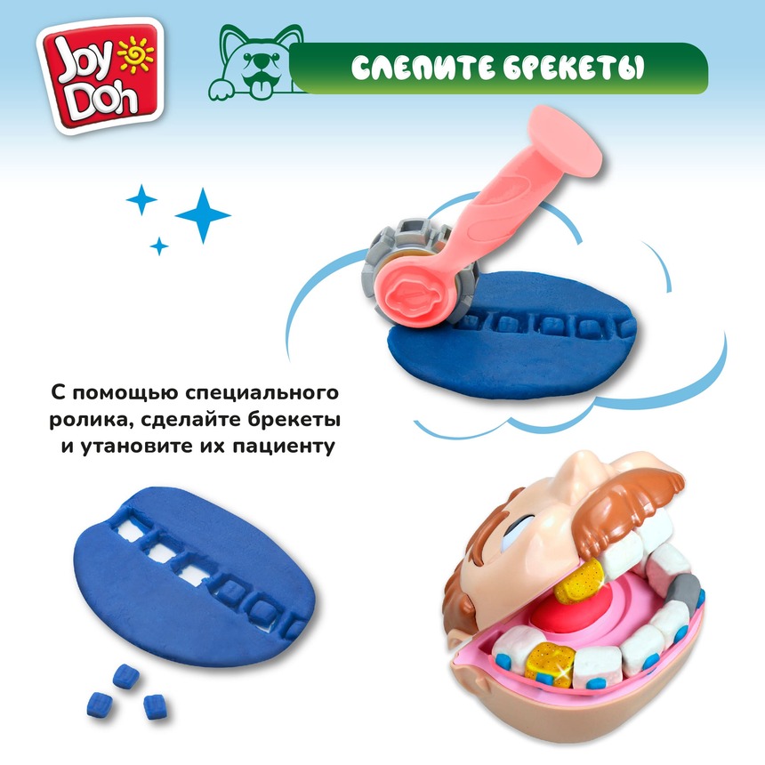 Масса для лепки Joy Doh, набор DENTIST SET - ЗУБАСТИК с золотыми зубами, 7 аксессуаров, 7 баночек с тестом, (7 х 50г.)