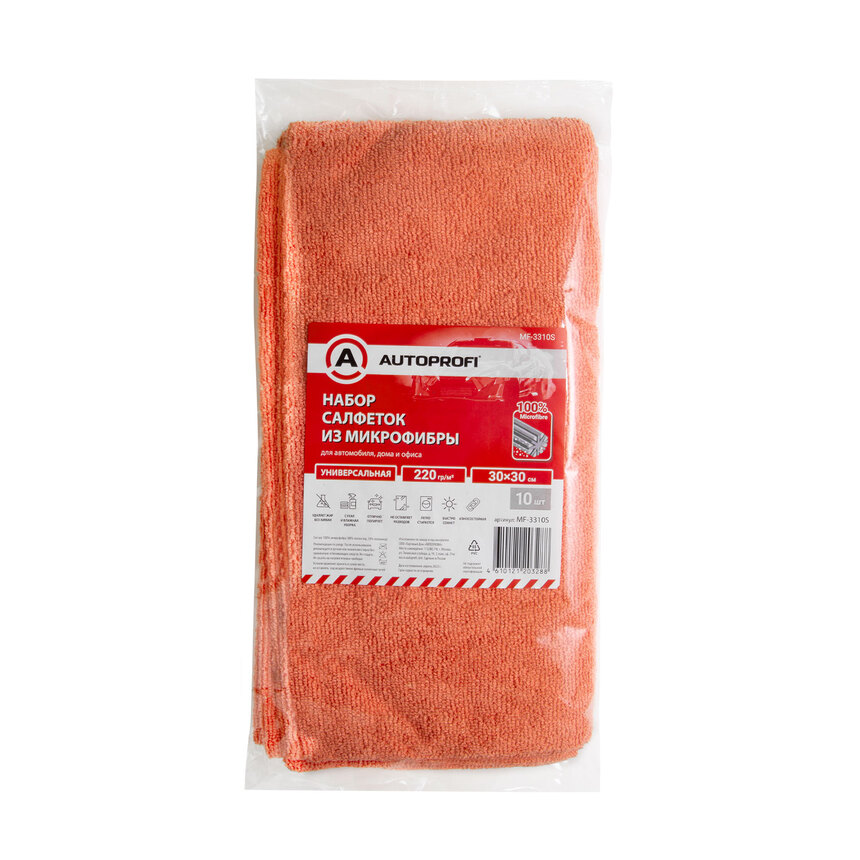 Набор салфеток из микрофибры "AUTOPROFI" стандарт, 220 гр/м2., 30х30 см.,10шт. MF-3310S