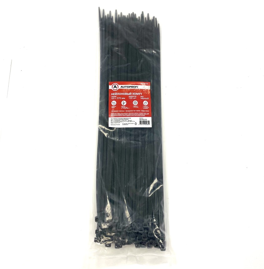 Нейлоновый хомут 4.8*370 мм, 100 шт, рабочая температура от -40 °С до +85 °С, черный