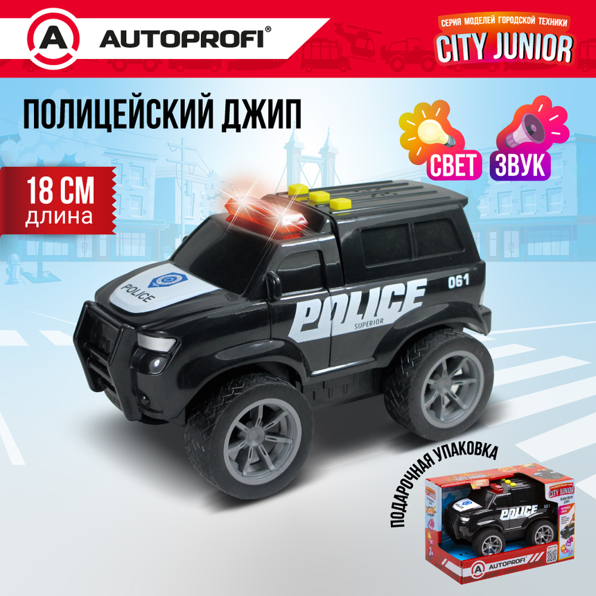 Полицейский джип CITY JUNIOR со световыми и звуковыми эффектами 18 см JU-018/POLC