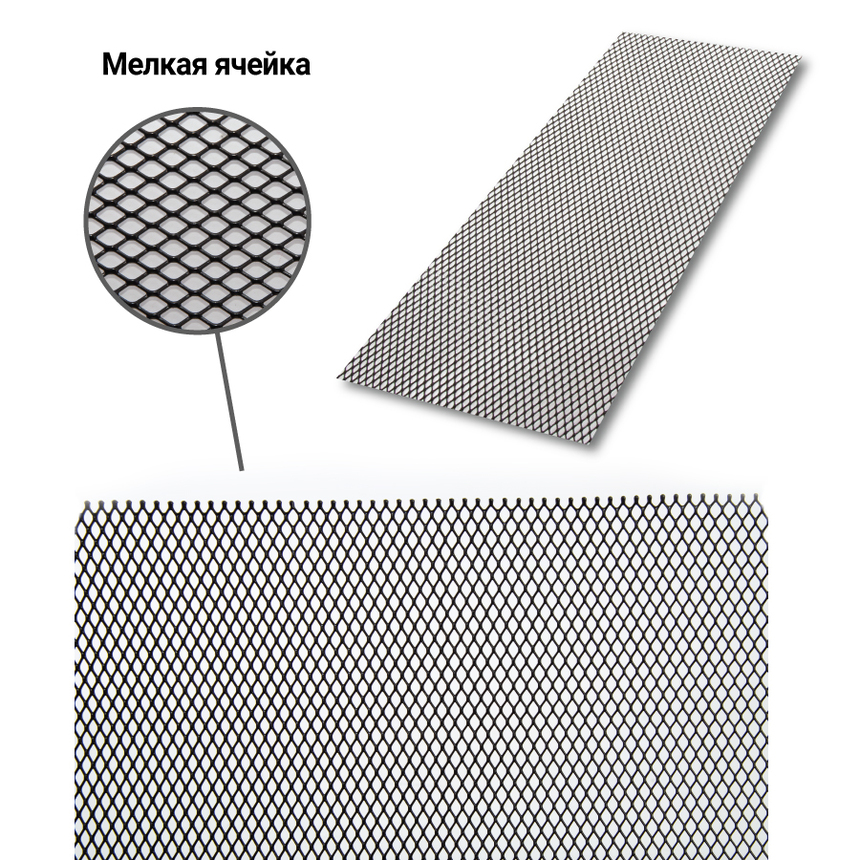 Сетка для защиты радиатора, 100 х 25 см. мелкая ячейка, алюминий, черный