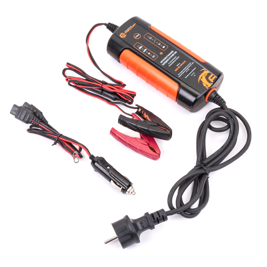 Компактное зарядное устройство для свинцово-кислотных АКБ 12В / 6В. Особенности устройства — 9-ступенчатая зарядка, режим восстановления батареи, подзарядка аккумулятора при температуре ниже +5 градусов. Зажимы универсальные на любые клеммы автомобильных аккумуляторов. Встроенный микропроцессор для контроля параметров заряжания и диагностики неисправностей. Подходит только для свинцово-кислотных АКБ!
